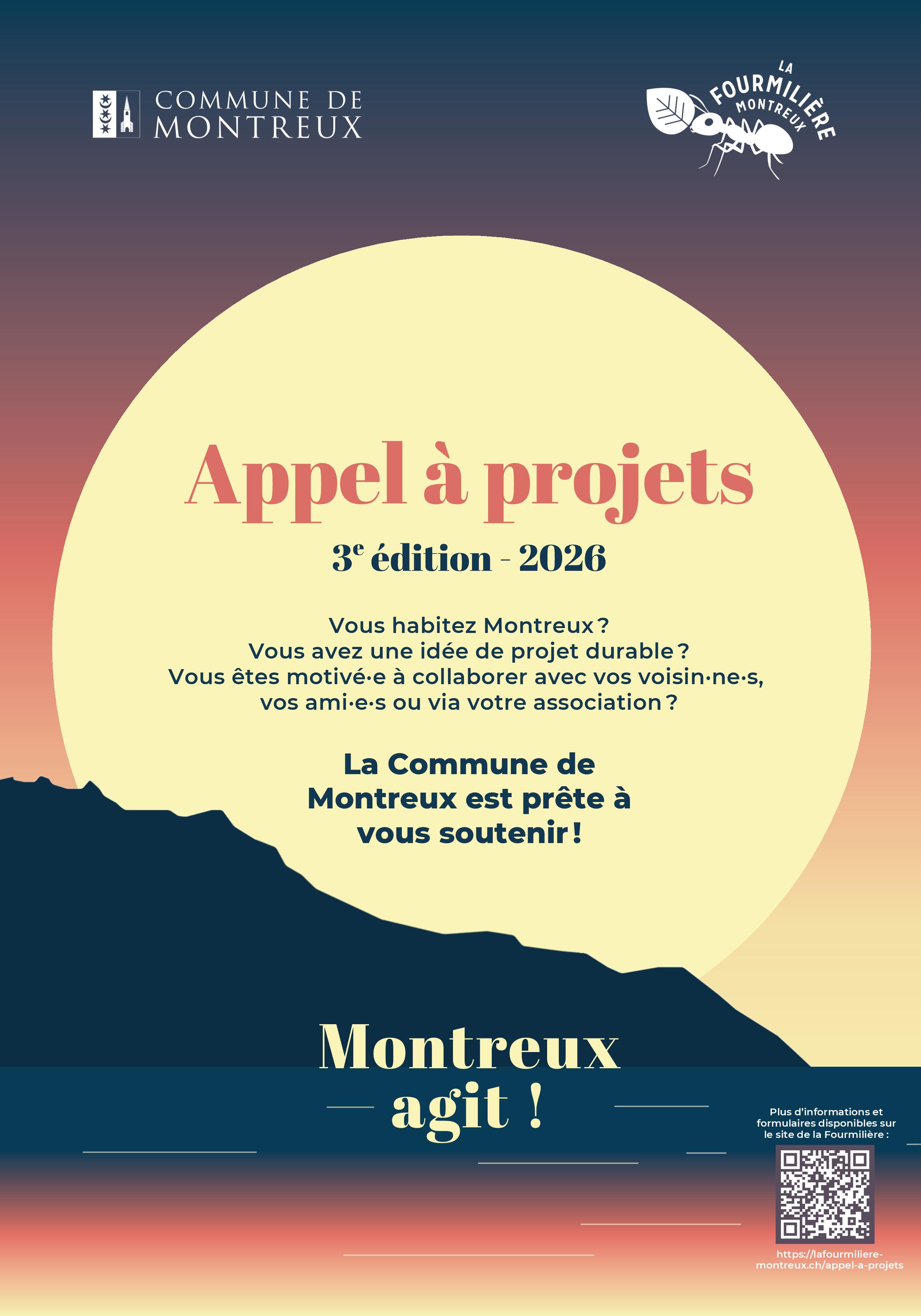 Cet appel à projets a pour but de financer des initiatives d’habitantes et habitants ou d’associations établies dans la Commune de Montreux, qui ont un impact positif en termes de durabilité sur le territoire communal.